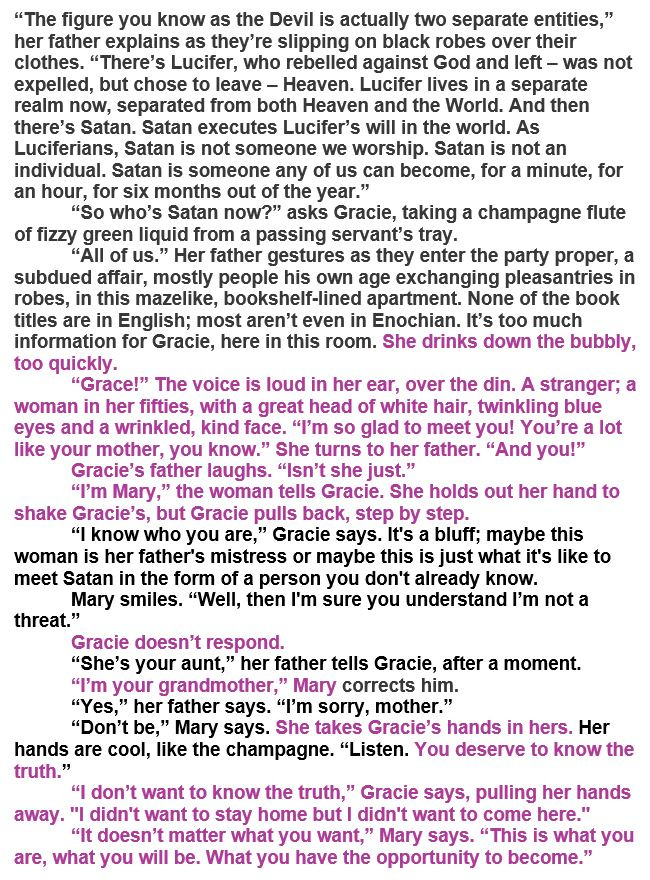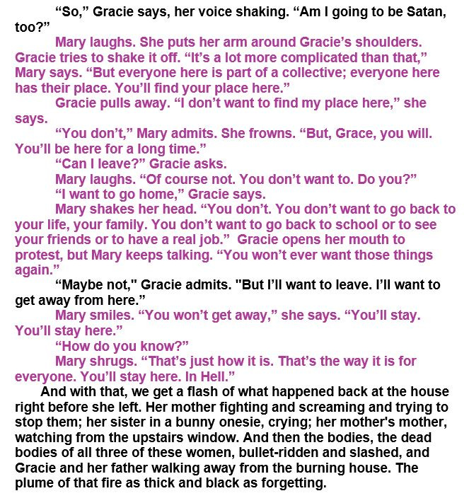 This scene was the part of the book where I probably kept the most prose directly from SudoWrite. It’s a nested story (in a novel that’s rife with them)—a Rosemary’s Baby type film that the characters are watching, about a girl who leaves home with her semi-estranged father to join a Luciferian cult. I knew I wanted this scene to be creepy as hell, but I couldn’t figure out what needed to happen to achieve that. SudoWrite had an answer: Mary.