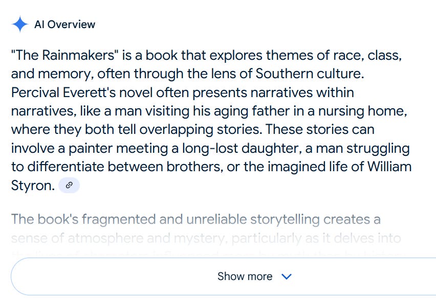 I have to stress again that you cannot have published a piece like this if you actually edited it. Or, hell, at least did a quick Google check. The “author”—or I guess “prompter”—of the list confirmed as much to 404 Media: “I do use AI for background at times but always check out the material first. This time, I did not and I can't believe I missed it because it's so obvious. No excuses.” It’s obvious this was more than just background though. Even the real titles have poorly written summaries. But this is how GenAI use was always going to go. Even if you tell yourself you will use it responsibly and that it will “enhance” your work, you quickly give up. Why do any work when you can get away with doing none, after all?